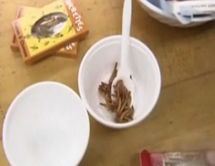 O professor recomenda as larvinhas para os mais sensíveis, enquanto os ousados devem experimentar os grilos.